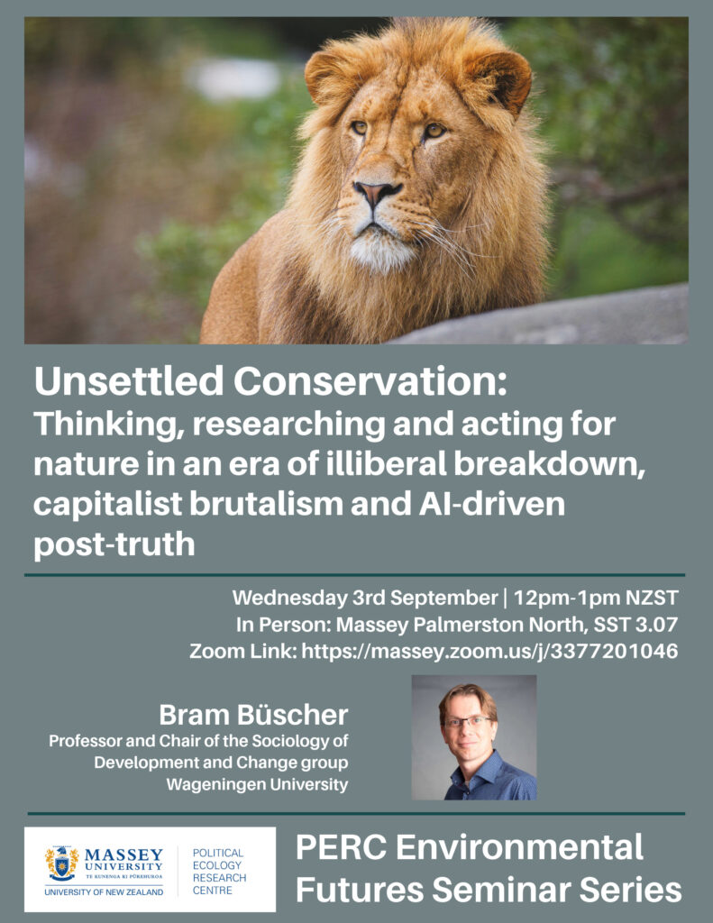 As global political dynamics are heating up amidst rising authoritarianism, violent, even genocidal conflicts and a crumbling international system, how to think about, do research on and take action for environmental issues that also continue to worsen rapidly? In this presentation, I reflect on this question by combining earlier research on the link between conservation and digital media and more recent work on the relations between artificial intelligence, post-truth and capitalist power. Building on Achille Mbembe’s concept of ‘brutalism’, I show how current forms of AI-driven capitalism are central to the rise of post-truth, authoritarianism and new forms of resource and power-grabs, and how these are marginalizing the already limited gains that neoliberal environmentalism made over the past decades. This moment of ‘unsettled conservation’, I will argue, also provides an opportunity to renew the critique of neoliberal environmentalism and, on this basis, propose alternatives going forward. I conclude by reflecting on how ‘planetary ethnography’ can renew this critique and whether ‘convivial conservation’ can be such a systemic alternative going forward.